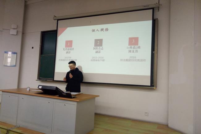现场评比阶段,参选人员选用了自己制作的演示文稿或视频等方式来进行展示。他们将在校期间所学、所得展现给各个评委以及在场的同学,为我院学子树立了良好的榜样。他们精心准备的文稿、视频和出色的表达、积极进取的态度值得所有人的肯定。经过评委打分,应宵,梁嘉怡,苏卓群等同学的现场得分位列前三。