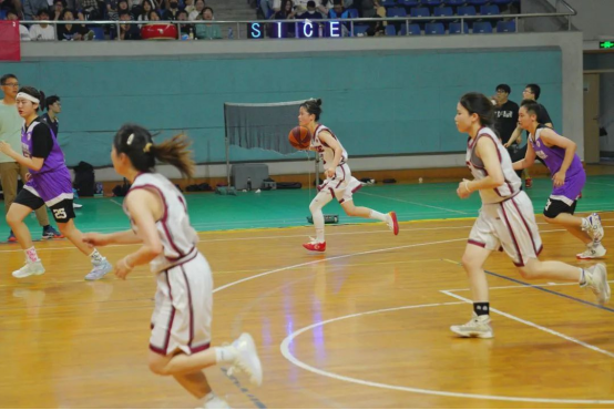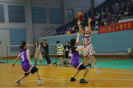 第一节比赛,双方比拼火热,国传代表队通过战术配合获得暂时领先。媒工女篮队员们发起猛烈攻势,国传女篮队员们一次次防守、拦截、传球,毫不泄气。“远投三分!”随着现场主持人的一声声播报,一个个漂亮的三分球投进了篮筐。