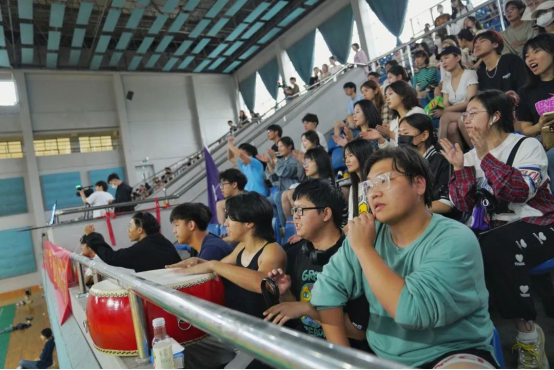 女篮选手在赛场上奋力拼搏的同时,观众席上的国传人也从不曾落后。他们带来了国传灯牌、院旗和大鼓,成为了女篮队员们最强有力的后盾。当队员们进球时,国传观众席的同学们用力挥舞学院大旗并用雷鸣般的掌声为女篮们欢呼;当队员们被对方进攻时,学院的同学们会大声呼喊“国传!加油!”为队员们加油鼓劲。这是国传人的归属,是国传人的凝聚,更是国传精神的发扬!