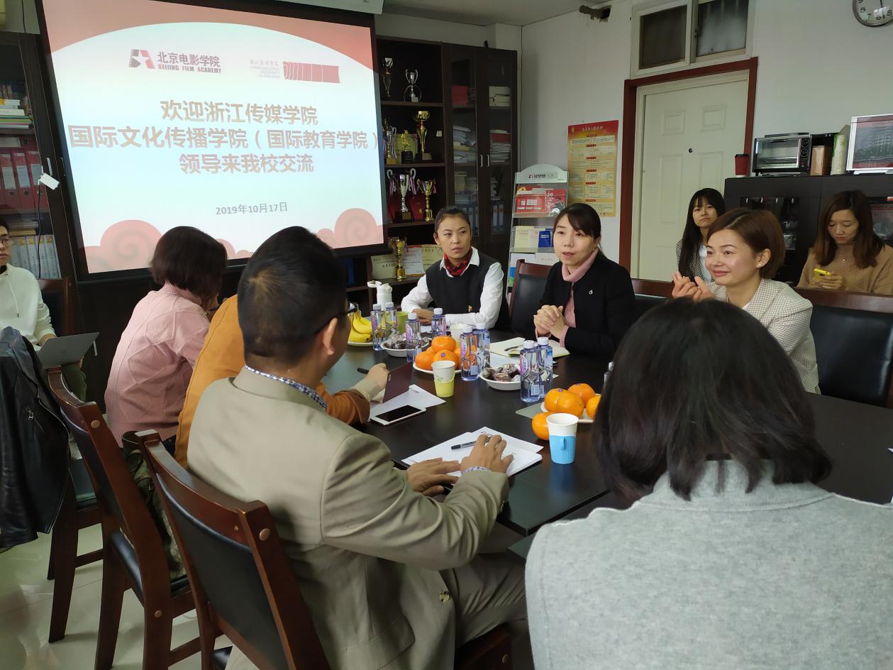 会上,双方就学院基本情况互相进行了介绍,并就课程建设、外语教学、教材使用以及留学生教育等诸多方面进行深入学习交流。戴运财对北京电影学院国际交流学院的热情接待表示衷心感谢,他指出,北京电影学院和浙江传媒学院同属于艺术类高校,在办学特色、课程设置和教学管理方面有很多的相似之处,北京电影学院国际交流学院办学历史悠久、特色鲜明,在外事交流合作、外语教学及留学生教育方面经验丰富,希望双方今后能够密切合作,共同提升。