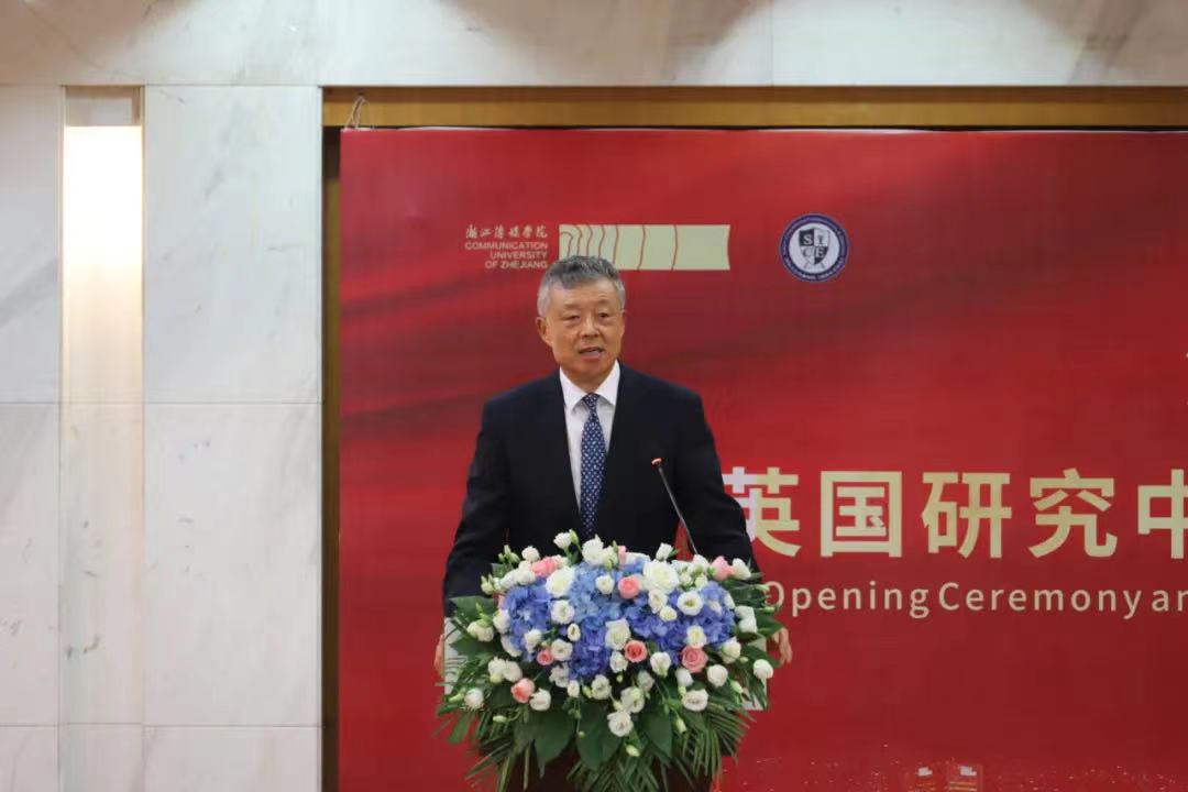刘晓明在讲话中对英国研究中心的成立表示热烈祝贺。他指出,浙江传媒学院英国研究中心的成立,不仅是进一步推进国际化办学的重要契机,也为聚焦英国研究多出成果、出好成果提供了重要平台。英国研究中心结合学校专长,把媒体传播、影视文学艺术、文化教育确定为对应研究的优选方向,可谓找准了方向,走对了路子。