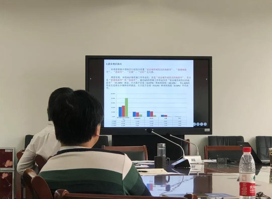 学院领导在听取汇报后,就我院就业创业工作存在问题及后续工作开展进行深入探讨,针对提升我院学生就业竞争力、提升对母校满意度等重点问题进行详细分析。