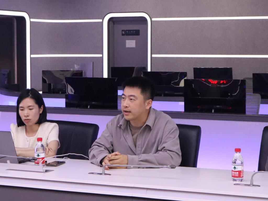 参观结束后,杭州文广集团国际网络传播中心负责人郑丹杰邀请我院师生参与交流分享会。会上,黄晓琴副院长提出“国际文化传播人才需要具备怎样的素养、国际文化传播到底应该怎么做”等问题。对此,郑丹杰提到,成为一名优秀的国际文化传播人才,除了扎实的外语基础,还需要具备敏锐的洞察力和创新思维。同时,他也鼓励我校学生积极创新,打开思维,了解国际传播风潮,为国际文化传播贡献自己的力量。