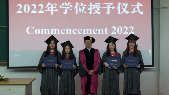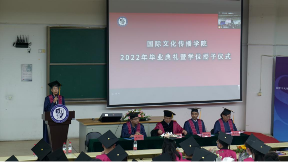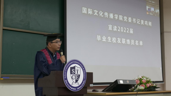 在同学们热烈的掌声中,戴运财院长宣读了国际文化传播学院(国际教育学院)省级优秀毕业生、校级优秀毕业生表彰名单;黄鸣刚书记宣读2022届毕业生校友联络员名单。同时,两位学院领导为毕业生们送上最真挚的祝福。