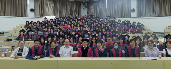 校长徐小洲在视频讲话中,勉励同学们要秉承开创精神,以‘长江后浪,世上新人’的活力勤于思考,必须在多元、开放、创新的当代世界争当专业革新的先行者。要牢记‘敬业、博学、求真、创新’的校训,在迎接挑战中,创造新文化,新文明、新世界和新的时代机遇。在毕业生们认真观看毕业典礼视频时,徐小洲校长惊喜地亲临活动现场看望我院毕业生,“零距离”为同学们送上了最真挚的祝福,并与师生们合影留念,全体毕业生起立鼓掌欢迎。