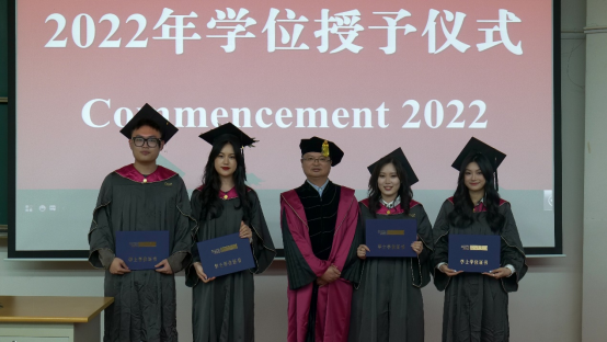 随后,我院采用线上线下相结合的方式在第二教学楼110教室举行2022届毕业典礼暨学位授予仪式。校党委委员、副校长姚争,国际文化传播学院(国际教育学院)院长戴运财,党委书记黄鸣刚,副院长黄晓琴等出席我院此次仪式。本次仪式由我院党委副书记张针铭主持,学院各科室负责人、系主任、全体辅导员及2018级各班班主任共同参与。