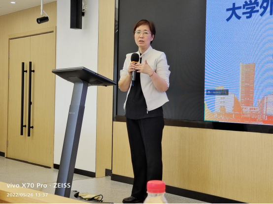 浙江传媒学院教务处处长黄寒冰首先点明了当前我校课程改革的重要性,大学英语改革是顺应英语教育发展方向与适应学校发展整体要求的一项有力举措。她进而提出大学英语教学应当结合时势,以线上、线下课程相结合的方式创造出“1+1>2”的课堂效果。