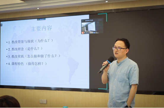 首先,薛阿三老师课题组展示了《学术英语》课程。薛阿三认为,学术英语改革服务于国家宏观的人才培养战略,正在成为最近几年高校英语教学改革的热点之一。《学术英语》课程改革面向已经通过大学英语四六级等级考试、具备良好英语语言基础的本校非英语专业二年级本科生,旨在培养学生通用学术能力和提升学生国内考研和出国英语考试能力,最终实现通用英语教学向通用学术英语教学的转变。他提出,《学术英语》课程是我校专门用途英语教学的先头兵,为《大学英语》其他方向的专门用途英语课程的建设提供了借鉴意义,具有示范和引领效应。