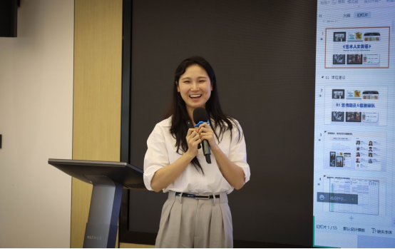 王绵绵老师课题组展示了《艺术人文英语》课程。王老师展示了课程理念、大纲制定、团队建设、学情调查、教学策略、试点教学效果、丰富的线上线下教学资源等。《艺术人文英语》隶属于我校大学外语拓展课程,针对艺术人文相关专业的大学二年级学生开设,围绕音乐、美术、影视、摄影、设计、表演、文学等艺术门类,在训练英语听说读写译的基础上,提升艺术人文素养与国际视野,希望培养学生在跨文化交际和用英语讲好中国故事的能力。