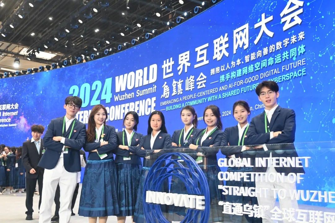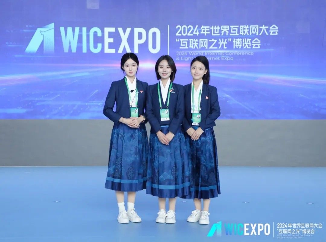 注册报到及重要活动服务组的3名志愿者们为本次互联网大会的“互联网之光博览会”提供讲解服务。她们充分发挥双语播音专业特色,将中国互联网发展的进程浓缩进短短几页的讲解词之中,并通过专业的解说,让来自国内外的嘉宾代表团们感受到中国互联网发展的力量。她们用自己的声音讲好中国互联网发展的故事,让各国来宾见到一个充满科技与蓬勃发展中的鲜活中国。