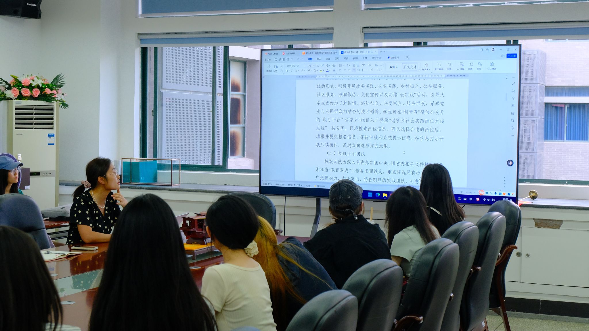 随后,分团委书记胡秀锦介绍了青马班的课程设置和实践活动相关内容。她着重强调了社会实践的重要性,指出青马班学员需通过社会实践锻炼综合能力。并鼓励同学们积极参与社会实践和挑战杯竞赛,充分利用学院的专业优势,组队参赛、勇创佳绩。此外,她还进一步介绍了暑期社会实践的安排和项目,鼓励同学们结合自身兴趣与专业优势,选择合适的实践项目,在实践中积累经验、增长才干。