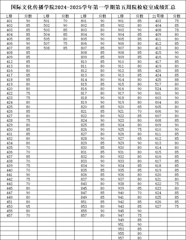 国际文化传播学院2024-2025学年第一学期第5周寝室督察情况
