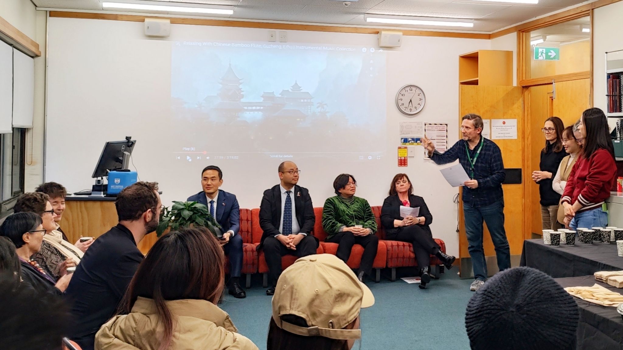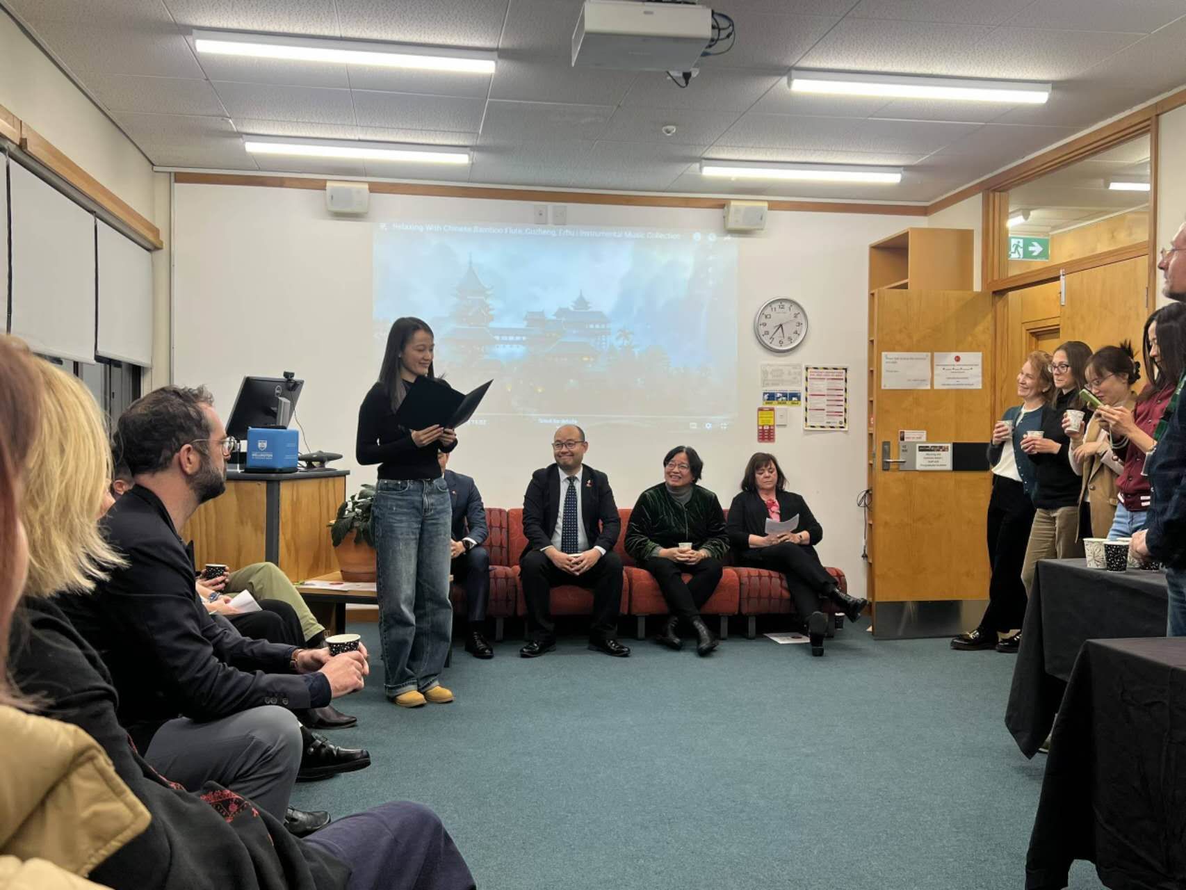 8月4日,浙江传媒学院与新西兰惠灵顿维多利亚大学联合培养传播学(合作办学)项目欢迎仪式在惠灵顿隆重举行。中国驻新西兰大使馆代办解勇军、教育事务二等秘书万丁、惠灵顿维多利亚大学教务长Bryony James教授、人文与社会科学学院院长Averil Coxhead教授、外事副院长Angela Joe博士、语言与文化学院院长Nicola Gilmour博士、Marco Sonzogni教授、截至目前到浙传线下授课的维大教师、浙江传媒学院访问学者及本项目负责人黄晓琴教授及17名浙传留学生共同出席。