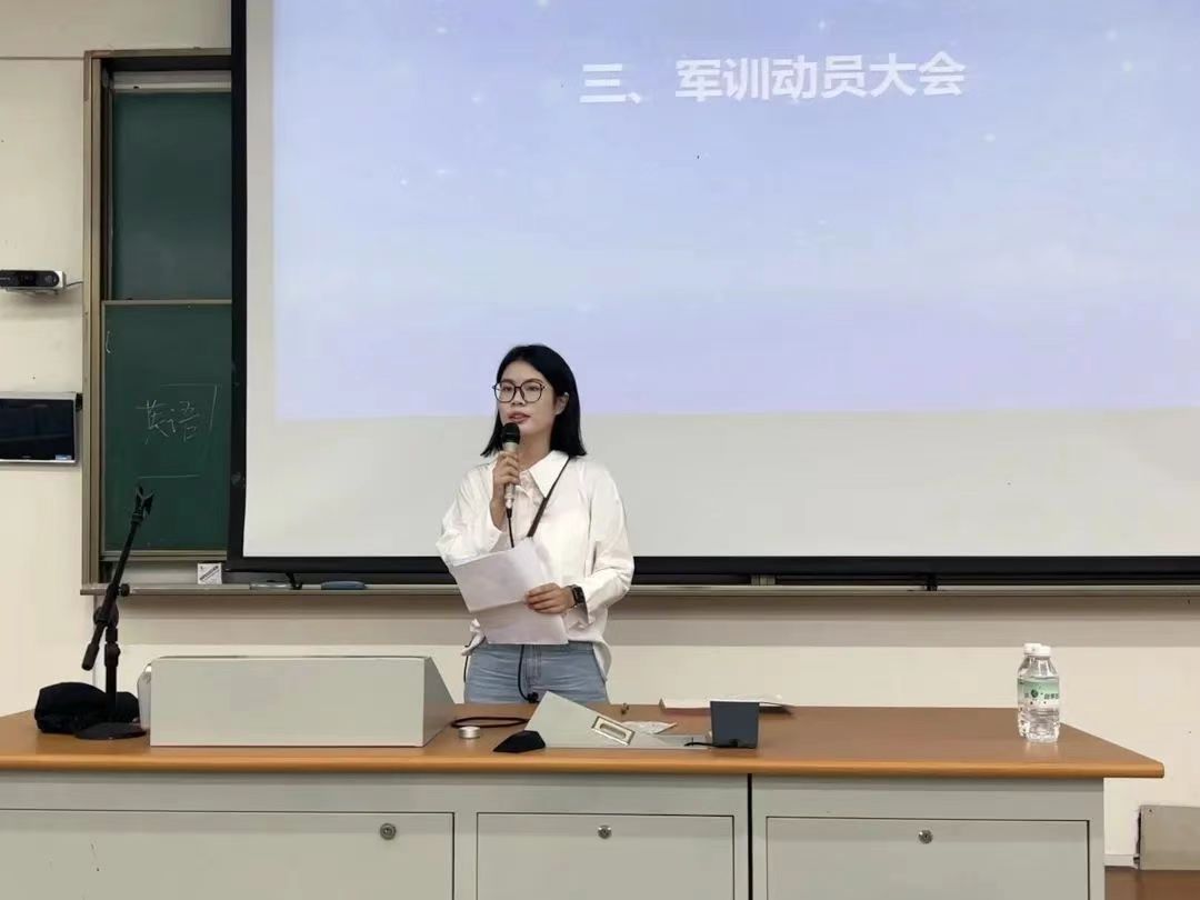 学工办辅导员陈晓倩老师为新生们强调了军训的纪律,介绍了军训期间的各项活动,要求同学们做到“不迟到、不早退、不旷训”,并做好军训期间的内务整理,鼓励大家完成好军训的第一课。