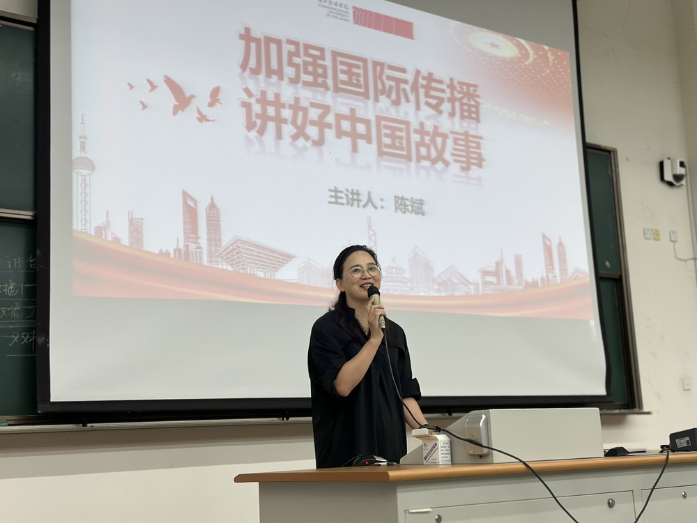 对于如何提升讲中国故事的能力,陈书记也为同学们提供了几条具体实践路径:一是要深入了解中国文化,注重故事的真实性和感染力,以更深邃的视野、更博大的情怀、更自信的态度展现新时代伟大的变革与精神面貌:二是要坚守中华文化立场,保存文艺的民族特性;三是要全面提升能力素质,提高语言表达能力与跨文化交流能力,成为具有国际视野的传媒人。